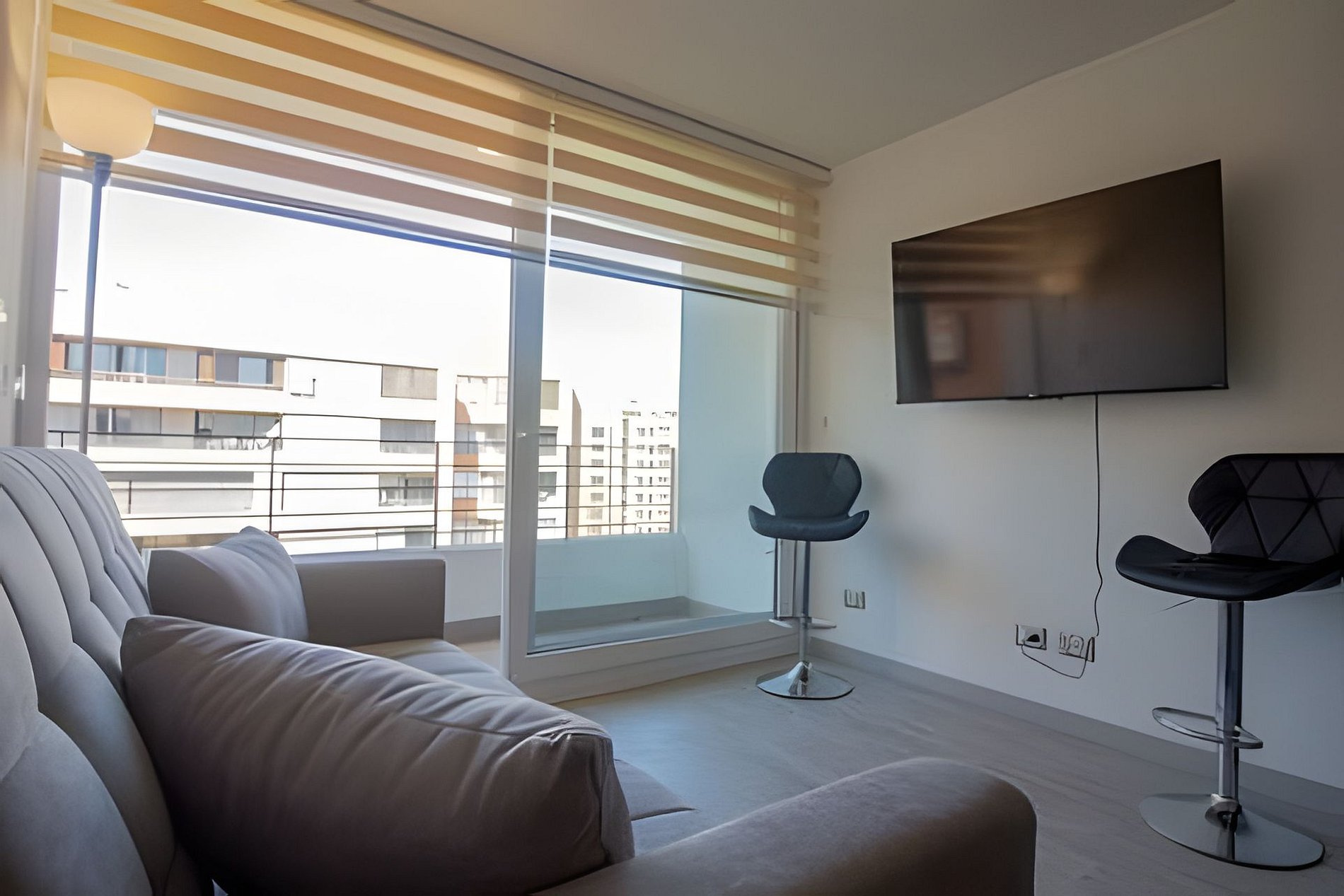 El edificio se presenta como un espacio contemporáneo, diseñado para quienes buscan una estadía que combine comodidad, funcionalidad y cercanía con lo mejor de Santiago. Su infraestructura incluye piscina exterior, gimnasio completamente equipado, quincho, lavandería y salón de eventos, junto a áreas comunes amplias y bien mantenidas que invitan tanto al descanso como a la vida social.