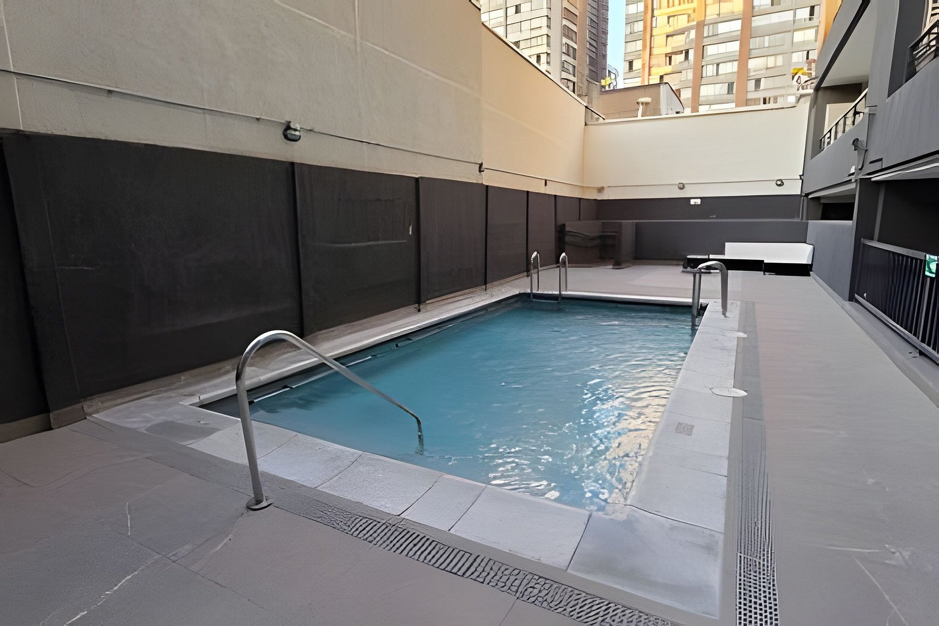 Entre la energía del centro de la ciudad y la calma de sus espacios interiores, este alojamiento ofrece piscina exterior, gimnasio completamente equipado, quincho y salón de eventos. Su infraestructura ha sido pensada para equilibrar vida activa y confort, creando un ambiente moderno, funcional y bien mantenido. Un espacio ideal para quienes desean disfrutar de Santiago con la comodidad de un entorno cuidado y conectado al auténtico espíritu de la ciudad.